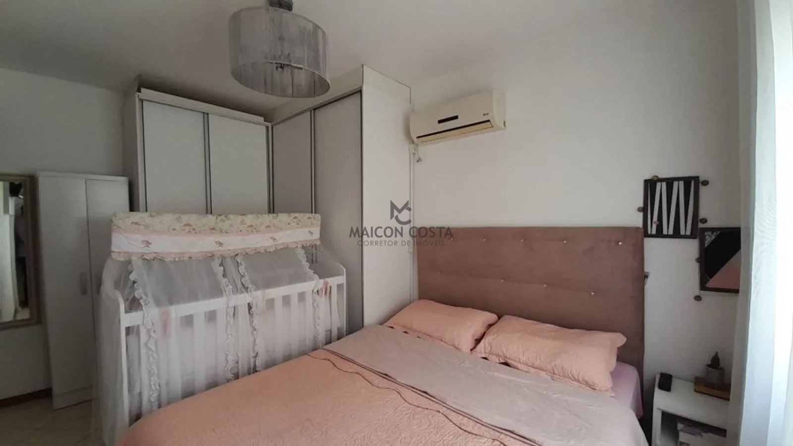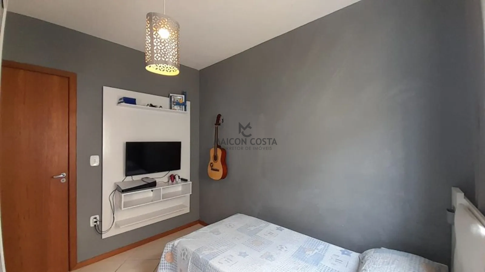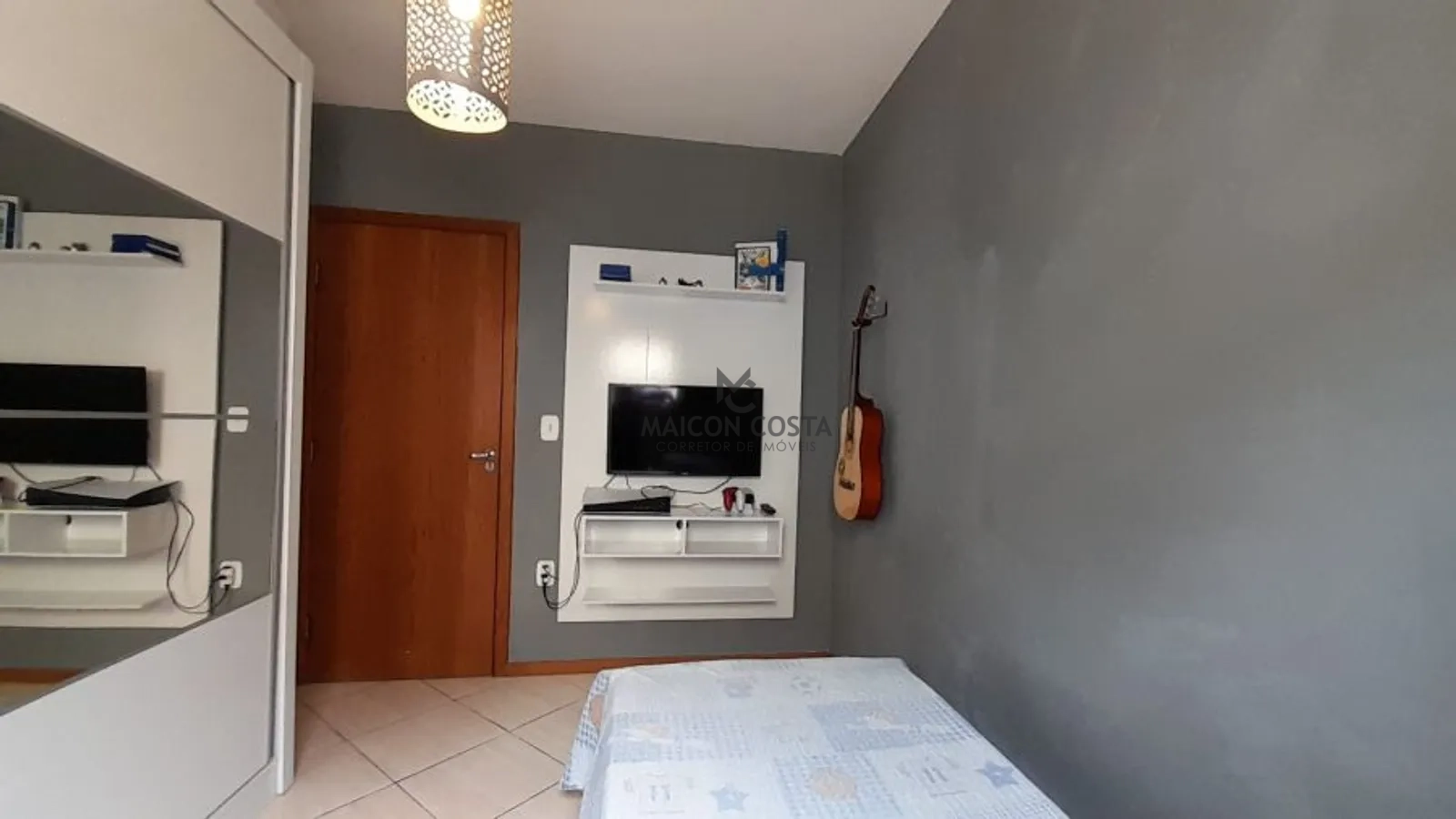 Quarto casal: armário planejado, cabeceira e painel de TV
