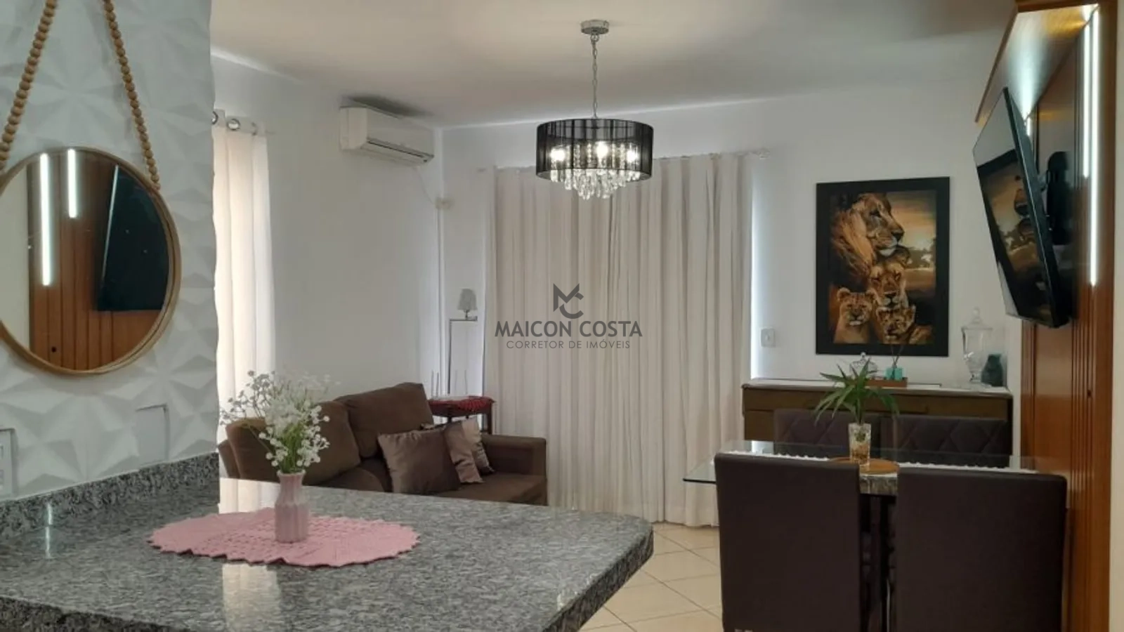 Sala com sacada e churrasqueira