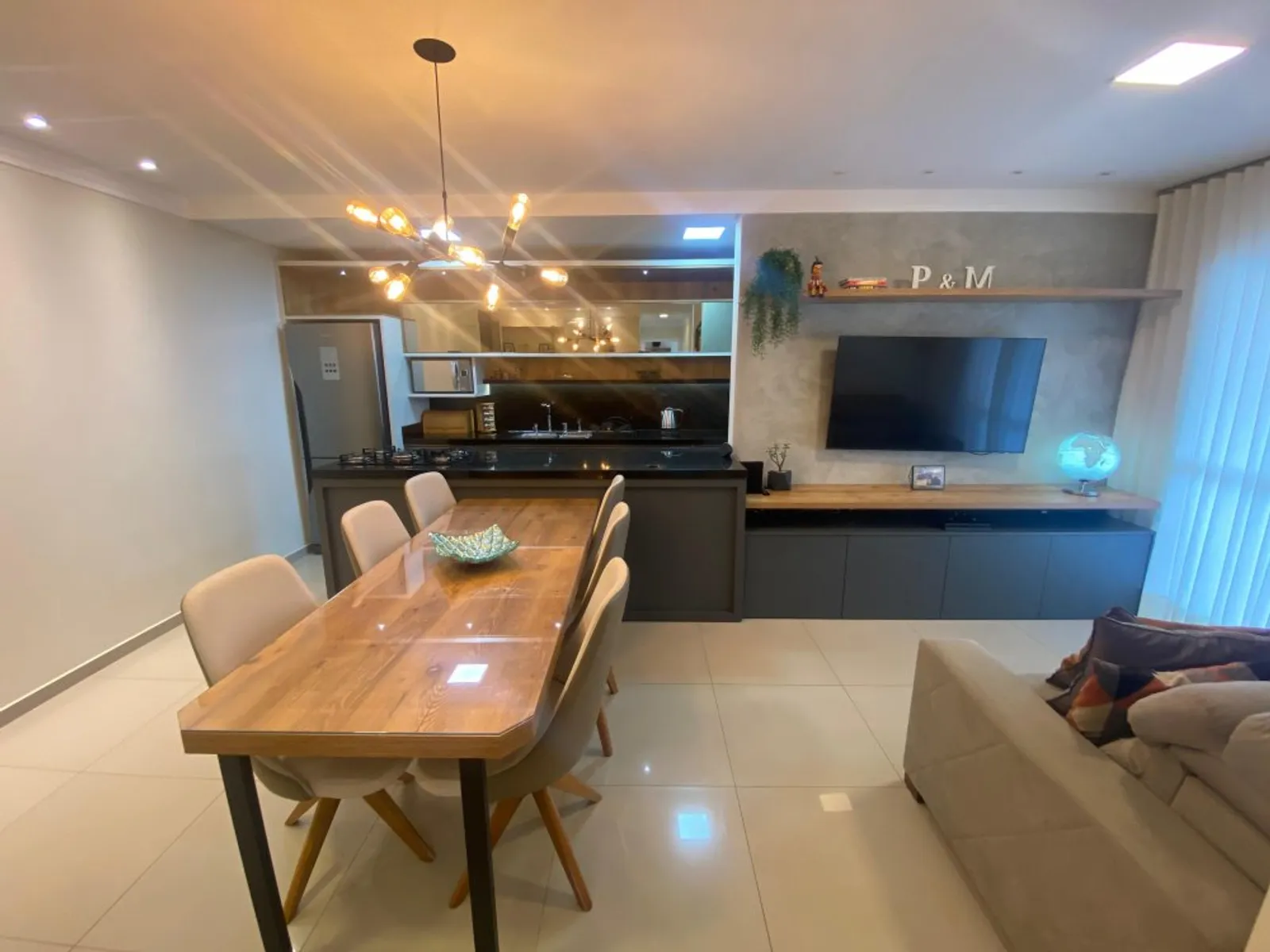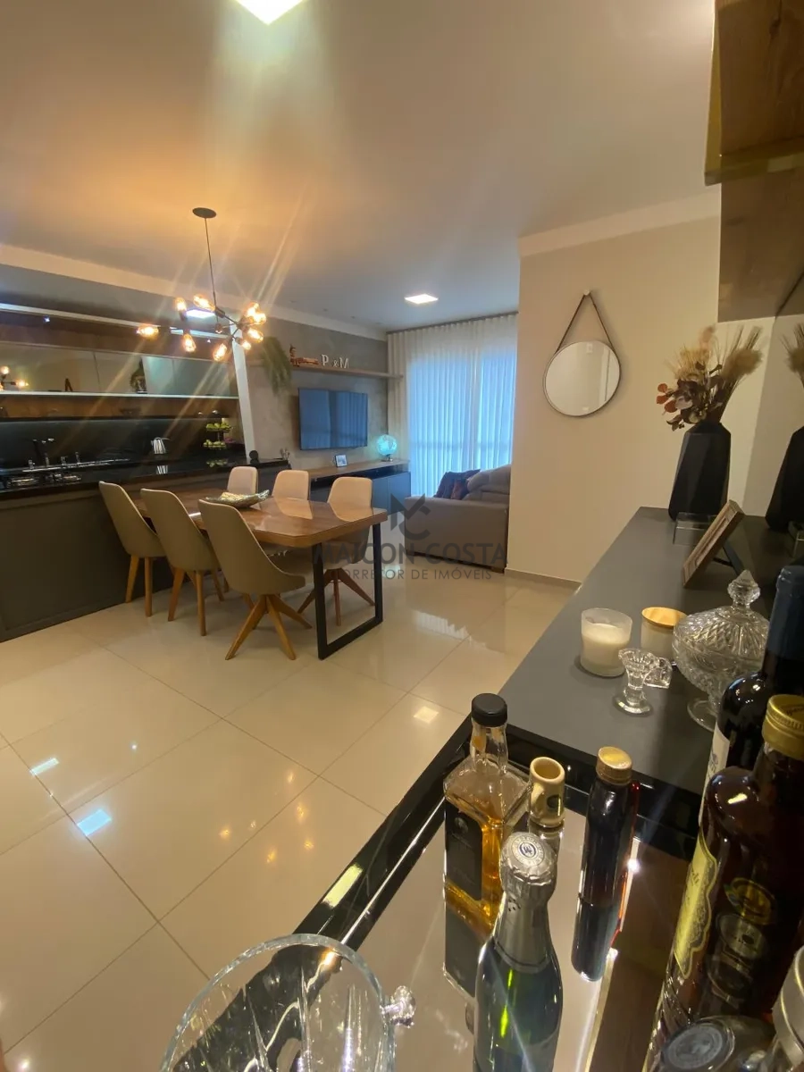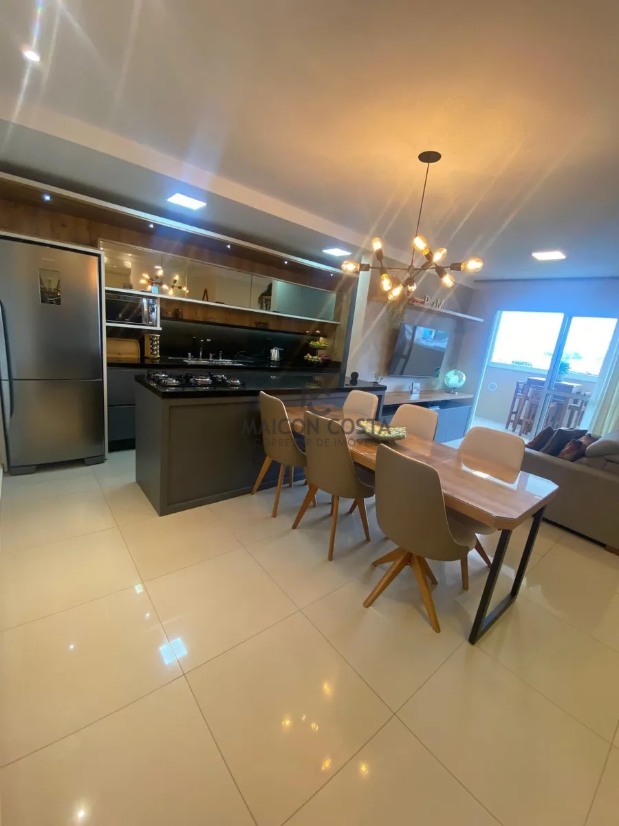Ao entrar, você é recebido por uma sala de estar generosa, perfeita para relaxar e receber visitas. A decoração é moderna e aconchegante, alé,m de uma varanda gourmet super aconchegante, com móveis de qualidade que complementam o ambiente.
