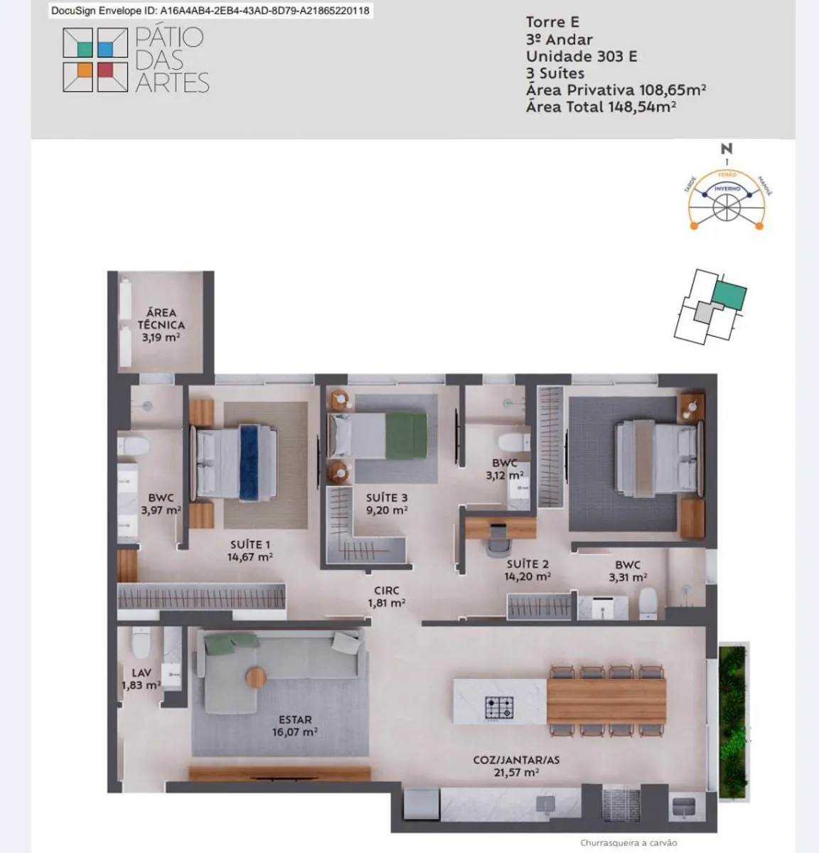 Localizada na Rua da Universidade, bairro Pedra Branca, Palhoça/SC, condomínio Pátio das Artes, Apartamento, Venda, Área privativa de 108.00m², pelo valor de R$ 1.495.000,00, 3 dormitório, sendo 3 suíte, 4 banheiro, 1 sala, 1 lavabo, 1 garagem,