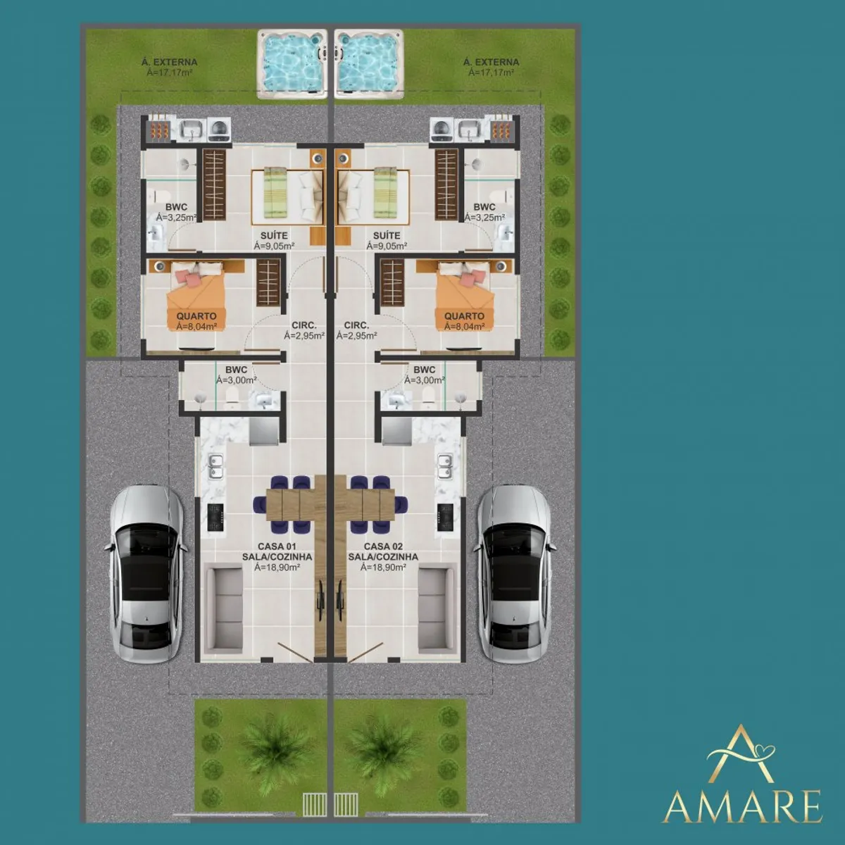 - Garagem com espaço para 02 carros;