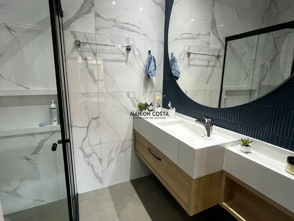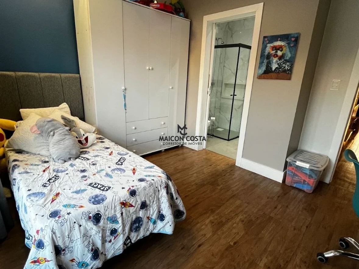 Casa 3 quartos em Beira Rio, Biguaçu com 220m² e 100% mobiliada pronta para morar. O imóvel possui 3 suítes completas, 3 banheiros e 2 vagas de garagem, sendo uma coberta e uma descoberta. A residência conta com escritura pública registrada e acabamentos de qualidade em todos os ambientes, oferecendo conforto imediato para toda família.
