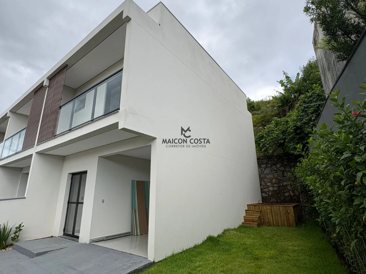 Sobrado geminado 2 quartos em Governador Celso Ramos com 77m² de área privativa e vista da montanha. O imóvel possui 2 dormitórios, 2 banheiros completos, 1 vaga de garagem e área total de 89,53m². Acabamento em porcelanato e churrasqueira para momentos de lazer em família, além de escritura pública regularizada.